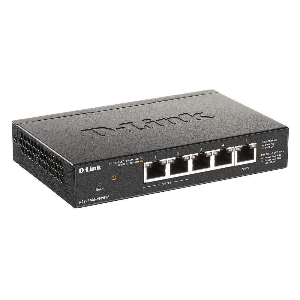 Коммутатор D-Link DGS-1100-05PDV2/A1A Настраиваемый L2 коммутатор с 5 портами 10/100/1000Base-T (2 порта PoE 802.3af, PoE-бюджет 18 Вт (802.3at) или 8 Вт (802.3af), 1 порт для питания коммутатора по PoE) DGS-1100-05PDV2/A1A (453298)
