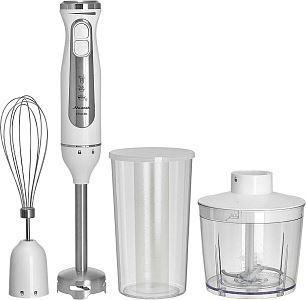 Параметры Максимальная мощность 1500 Вт Номинальная потребляемая мощность 600 Вт Объем чаши измельчителя 500 мл Объем мерного стакана 700 мл Описание Блендер электрический предназначен для смешивания, измельчения и взбивания продуктов и жидкостей в бытовых и аналогичных условиях Ножи из нержавеющей стали Три сменные насадки: насадка для смешивания венчик для взбивания измельчитель Мерный стакан Противоскользящие ножки чаши измельчителя Плавная регулировка скорости Режим «ТУРБО» Цвет: белый Упаковка: цветная коробка