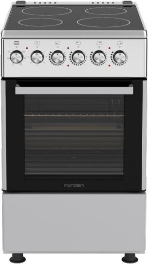 Плита отдельностоящая стеклокерамика 50х60 см электрическая духовка, 5 режимов приготовления духового шкафа, съемное внутреннее стекло (Cood Door), турбоконвекция, термостат, подсветка духовки, верхний,нижний тэн, 1 противень, 1 решетка, Рабочая поверхность стеклокерамика (2 x o145 мм - 1200 Вт + 2 x O185 мм - 1800 Вт), нижний ящик для посуды, объём духовки 52 л. без крышки. В комплекте: кабель, регулируемые ножки. Цвет Нержавеющая сталь. Упаковка пенопласт