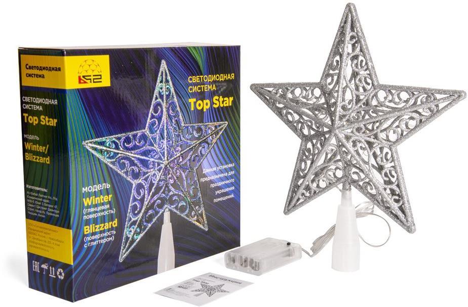 Какой атрибут главный на новогодней елке Конечно ЗВЕЗДА Праздничный свет B52 "BLIZZARD" идеальный вариант для украшения макушки новогодней елки. Серебряная блестящая звезда, отлично смотрится при дневном свете. А с наступлением темноты начинается настоящее волшебство "BLIZZARD" излучает 4 цвета свечения: синий, зеленый, фиолетовый и теплый белый. Корпус украшен глиттером. Эта звезда на елку работает от батареек, что позволяет установить ее на дерево любой высоты и в любом месте вашего дома.