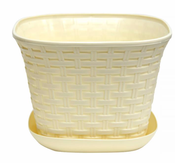 Кашпо квадратное "Ротанг" 3,4 л с поддоном (слоновая кость)