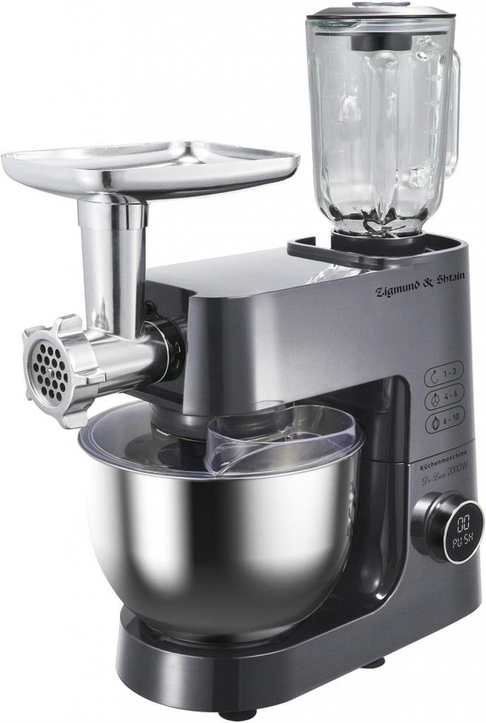 Кухонная машина Мощность: 2000 Вт Напряжение: 220-240 В, 50- 60 Гц Объем чаши миксера: 7 л Объем чаши блендера: 1,5 л Количество скоростей: 12 Импульсный режим: да Тип двигателя: АС (с медной обмоткой) Материал корпуса: ABS-пластик Материал чаши миксера: н/ж сталь SUS 304