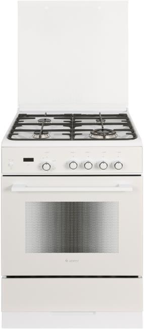 Габариты ШхГхВ, см: 60х60х85; Тип подключения: Газовый; Объем духового шкафа, л: 52; Количество зон приготовления: 4; Цвет: Белый; Материал варочной поверхности: Эмаль; Материал решеток варочной поверхности: Чугун; Материал решеток варочной поверхности: Чугун; Двухзонная горелка варочной поверхности; Крышка плиты: Стеклянная; Газ-контроль горелок стола; Газ-контроль духового шкафа; Электророзжиг горелок стола: Розжиг встроен в ручки; Электророзжиг духового шкафа: Розжиг встроен в ручки; Таймер: Сенсорный; Тип направляющих духового шкафа: Съемные проволочные; Тип очистки: Гидролизная; Внутреннее покрытие духового шкафа: Эмаль легкой очистки SMART CERAMIC; Количество стекол в дверце духового шкафа: 2; Телескопические полки; Ящик для посуды и принадлежностей: Выдвижной ящик; Внутреннее освещение духового шкафа: Одинарное; Контроль температуры духового шкафа: Термостат; Гриль; Нижний нагрев; Горелка гриль, Вт: 1900; Диапазон номинального напряжения сети, В: 220-230
