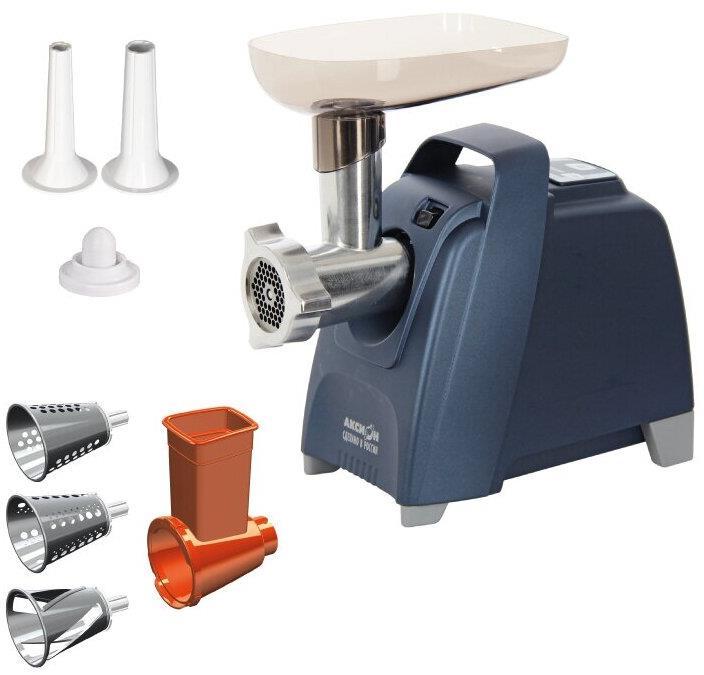 Мощность 2000 Вт. Реверс. Срок службы, лет 5 Габаритные размеры (ШxВxГ) 28,4/18,4/ 23,4 см. Производительность 4 кг/мин. Панель управления электронная. Вес, кг 5.5 кг. Материал пластик. Тройная защита от перегрузок. Световая индикация загрузки двигателя. 2 скорости переработки продуктов. Умный реверс – автоматический запуск обратного вращения шнека при возникновении трудностей с прокруткой мяса. Увеличенное время непрерывной работы – до 30 минут.