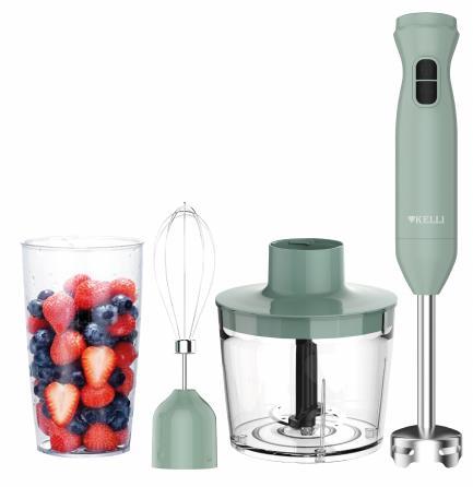 Блендер Мощность: 1800Вт Мерный стакан: 700мл Чаша измельчителя : 500 мл Число скоростей: 2 Плавный регулятор мощности Удобная эргономичная ручка Ножи из нержавеющей стали Металлическая погружная часть Венчик для взбивания 220-240 В, 50\ Гц Размеры: 20см*23см*12,6см