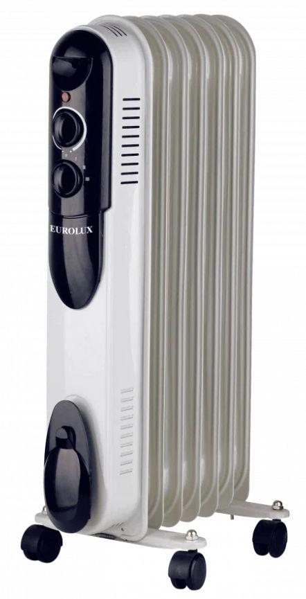 Масляный радиатор Eurolux ОМПТ-EU-7Н 67/3/18 - электрический прибор бытового назначения, предназначенный для отопления небольших помещений. Удобные ручки управления обеспечивают простоту и легкость настройки радиатора. Мощности 1500 Вт достаточно, чтобы обогреть помещение площадью до 15 кв.м. Этот компактный, легкий прибор для удобства перемещения оснащен колесами. Вес нетто, кг 5,6 Габариты без упаковки, мм 370х140х650 Тип масляный обогреватель Площадь обогрева, в м 15 Максимальная мощность, в Вт 1500 Количество секций 7 Регулировка мощности Да Количество режимов мощности 3 Термостат механический Управление механическое Тип установки напольный Защита от перегрева