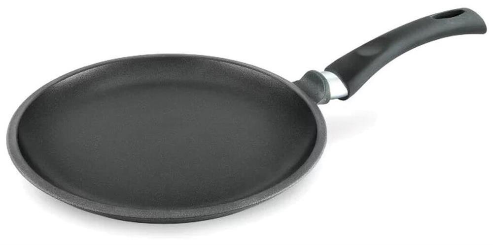 Блинная сковорода Размер: 22 см Материал: литой алюминий Цвет: черный Серия: Ферра индукция Тип плиты: для всех типов, включая индукционные Внутреннее покрытие: полимер-керамическое Ручка: бакелит Можно мыть в посудомоечной машине Особенности: Современные технологии позволяют упростить процесс готовки и сделать его максимально комфортным. Сковороды линии Ферра индукция благодаря стальному диску, вплавленному в корпус сковороды, подходят как для использования на индукционных плитах, так и на других типах