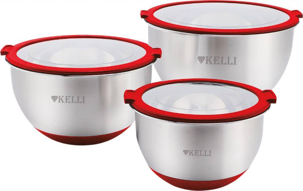 Набор мисок с прозрачными крышками с силиконовым ободком Объём: 1,5 л Диаметр: 16 см Объём: 2,9 л Диаметр: 20 см Объём: 5,0 л Диаметр: 24 см Высококачественная нержавеющая сталь Мерная шкала Плотно прилегающие крышки из термостойкого платика Противоскользящее силиконовое основание Зеркальная и матовая полировка Подходит для посудомоечной машины