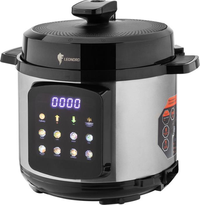 Обьем чаши 5 л Чаша с многослойным антипригарным покрытием Black Marble Pro Сенсорное управление LCD дисплей 8 автоматических программ приготовления: рыба, детское меню, суп, тушение, каша, курица, рис, мясо Поддержание температуры Таймер отсрочки запуска до 24 часов Kнопка сброса давления на крышке Мощность: 1000 Вт В комплекте: мерный стакан, ложка, книга рецептов Гарантия 2 года Универсальный прибор для приготовления пищи. Современная технология приготовления блюд под давлением позволяет максимально сохранить натуральный вкус и полезные свойства продуктов. Важной особенностью мультиварки-скороварки LEONORD является сокращение времени приготовления блюд более чем в два раза по сравнению с классическими способами приготовления.