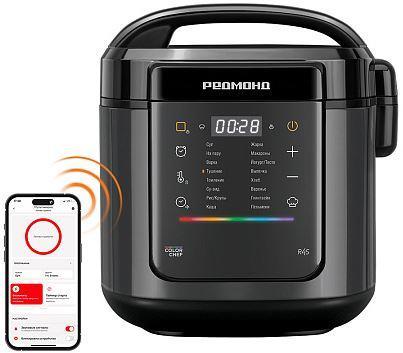 Умная мультиварка. Тип управления: дистанционный (Ready for Sky REDMOND)/электронный (сенсорный). Голосовой помощник: Алиса/Маруся. Объем чаши: 5 литров (полезный объем: 4 литра). Антипригарное покрытие чаши DAIKIN (Япония). Передача данных через Wi-Fi. Поддержка на операционных системах: Android/iOS. Материал корпуса: металл/пластик. Защита от поражения электрическим током: класс I. (2 вида датчиков защиты: невозвратная термозащита/электронные ошибки серии Е). 18 автоматических программ. Съемные: паровой клапан и внутренняя крышка. LED дисплей с подсветкой, Автоподогрев, Таймер до 24 часов, Блокировка панели управления, Звуковой сигнал, Отложенный старт до 24 часов, Пастеризация, Стерилизация. Длина шнура: 1,2 метра. Доп. возможности: приготовление сыра, творога, фондю. Габариты: 285*307*273 мм. Комплектация: книга рецептов, контейнер для приготовления на пару, мерный стакан, мультиварка, плоская ложка, руководство по эксплуатации, сервисная книжка, чаша, черпак, шнур питания.