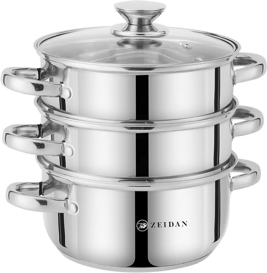 Пароварка ZEIDAN Z-501107 d18 см 2,5 л, Пароварка d18см - 2,5л, нержавеющая сталь, 3-х слойное капсулированное индукционное дно, 3 яруса. Подарочная упаковка.