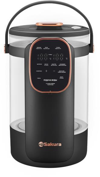 Термопот; Общий объём 3,8л; Полезный объём: 3л; Мощность: 1200Вт, LCD сенсорный дисплей; Колба из стекла; Кипячение; Функция "чистая вода"; Поддержание температуры; Блокировка кнопок; Защита от перегрева и включения без воды; Цвет: черный; Длина шнура: 0,85м.