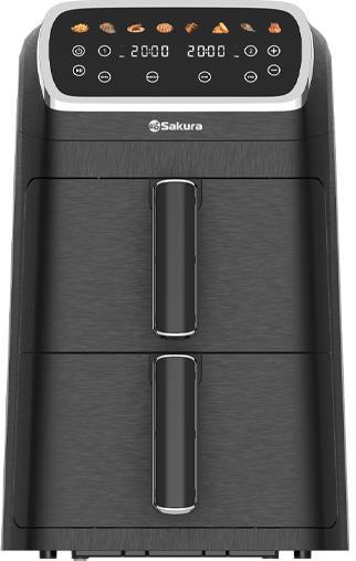 Аэрогриль; Мощность: 2600 Вт; Общий объем: 10л (2 чаши по 5 л); 8 программ приготовления; Возможность готовки каждой чаше по отдельности или в обеих сразу; Регулировка температуры: 80-200 °C; Таймер на 60 мин; Сенсорное управление; Готовит без масла или с минимальным его использованием; Подходит для всех блюд, которые готовятся в духовке; Цвет: черный; Длина шнура 80см; Размер: 352x222.5x404 мм
