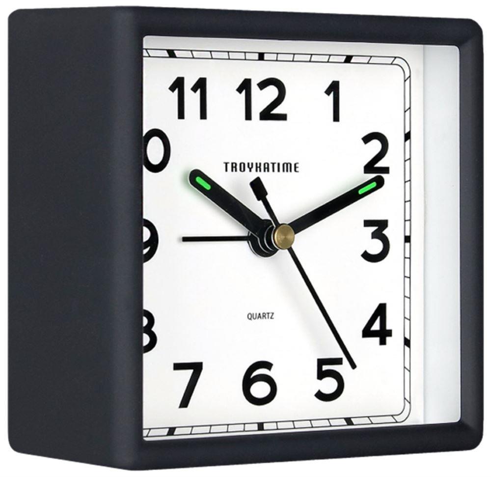 Настольные часы-будильник, пластиковый корпус, размер 95*95мм, кварцевый механизм с сигналом, цвет-черный матовый.