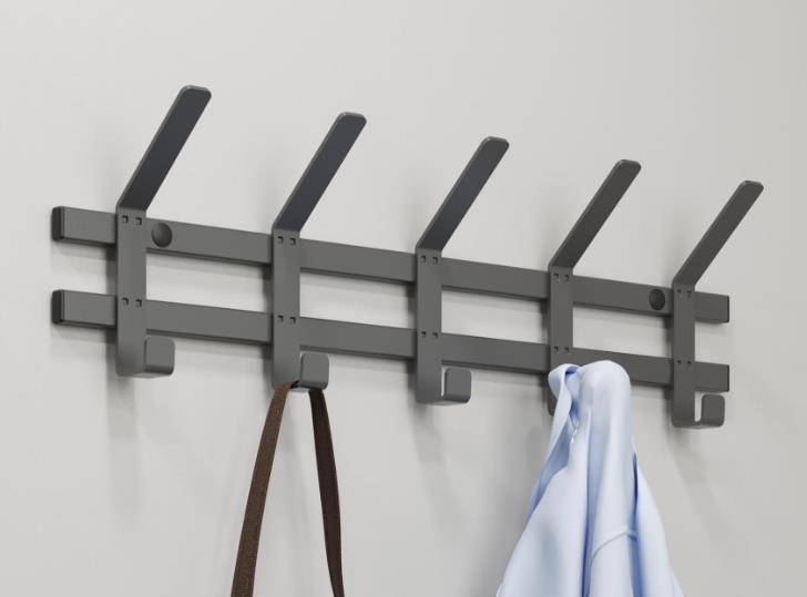 Назначение Для размещения одежды. Материал сталь, полимерное покрытие. Индивидуальная упаковка 60,4 х 17,4 х 9,1 см. Габариты (Д*Ш*В) 58 х 8,5 х 16,8 см. Максимальная нагрузка, кг до 7 кг на крючок. Уход Протереть влажной тряпочкой с мыльным средством. Температура применения, °C от 0 °C до +30 °C.