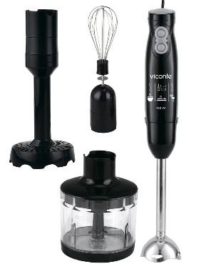 Погружной блендер, мощность 750W, современный эргономичный дизайн, пульсовый режим работы, 2 скорости, лезвия из нержавеющей стали, металлическая нога блендера, венчик для взбивания, насадка для приготовления пюре, чаша с ножом для рубки и измельчения, 400 мл; автоматическая блокировка при неправильно установленной насадке, удобство и простота в обращении и чистке.