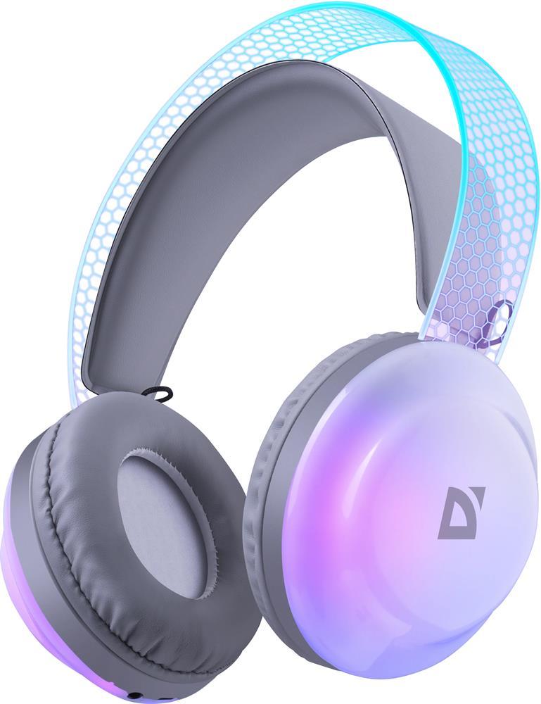 Игровые тренды в Bluetooth формате - гарнитура с отличным звуком с яркой RGB подсветкой и удобным двойным оголовьем.