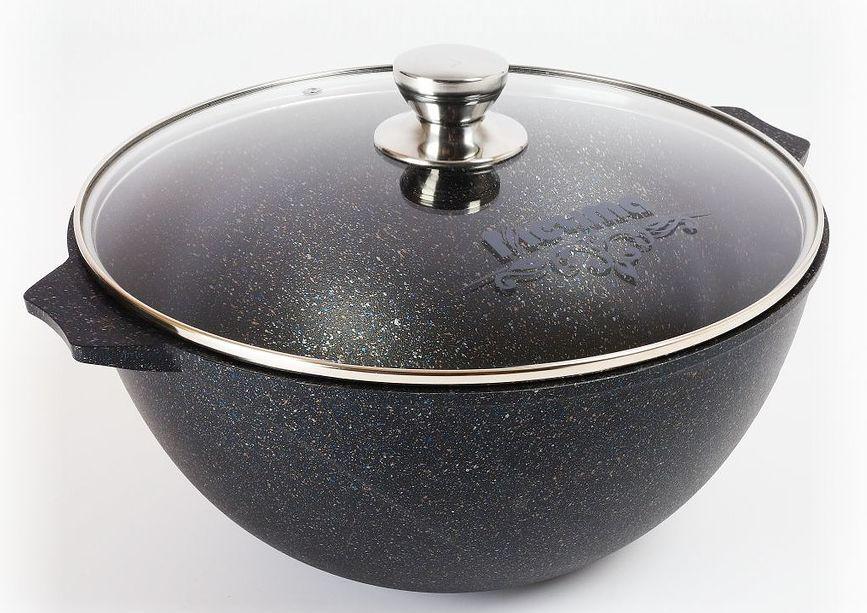 Казан для плова 7л с антипригарным покрытием и стеклянной крышкой серии "Гранит star" Подходит для всех типов плит, кроме индукционных. Можно использовать в посудомоечной машине.