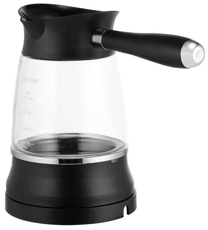 Электротурка CENTEK CT-1096 черный имеет мощность 480 Вт. Функция защиты от включения без воды поможет предотвратить выход из строя турки по невнимательности. Благодаря особой системе нагрева закипание жидкости происходит гораздо быстрее. Уровень воды не должен превышать отмету MAX на корпусе (500 мл). Особенности: - стеклянная колба; - скрытый нагревательный элемент; - съемная ненагревающаяся ручка; - защита от включения без воды; - защита от перегрева; - удобное основание.