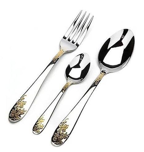 Набор столовых приборов MAYER&BOCH на 6 персон включает в себя 18 предметов: 6 столовых ложек, 6 столовых вилок, 6 чайных ложек. Столовые приборы изготавливаются из высококачественной нержавеющей стали, все изделия проходят тщательный технологический контроль. Приборы из нержавеющей стали такого состава отличаются высокими антикоррозионными свойствами, значительной устойчивостью к воздействию кислот и щелочей. Такая сталь не изменяет вкус и цвет пищи, не выделяет вредных веществ. Элегантные золотые узоры на столовых приборах выполнены по технологии плазменного напыления, обеспечивающего высокую износостойкость покрытия. Стильный, классический дизайн и отличное качество столовых приборов MAYER&BOCH делают набор желанной покупкой для любого, даже самого пристрастного, клиента. Набор столовых приборов MAYER&BOCH, безусловно, займет достойное место на любой кухне. Набор подходит как для ежедневного использования, так и для торжественных случаев. Набор упакован в красивый подарочный деревянный кейс. Подходит для мытья в посудомоечной машине.
