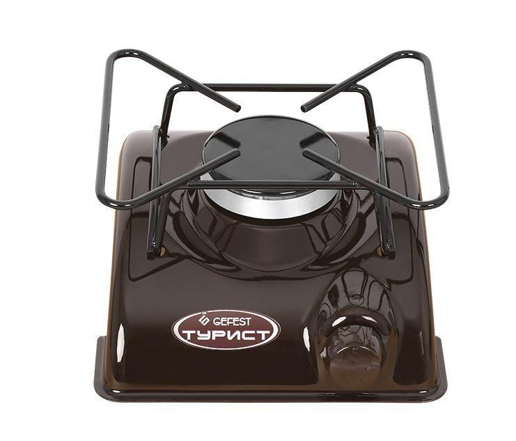 Плита газовая туристская * Цвет: коричневый. Фасад эмалированный * Габаритные размеры ШхГхВ: 17х19.5х9.5 см * Термостойкое эмалированное покрытие стола (корпуса) * Фиксированное положение «малое пламя» * Фигурная решетка *