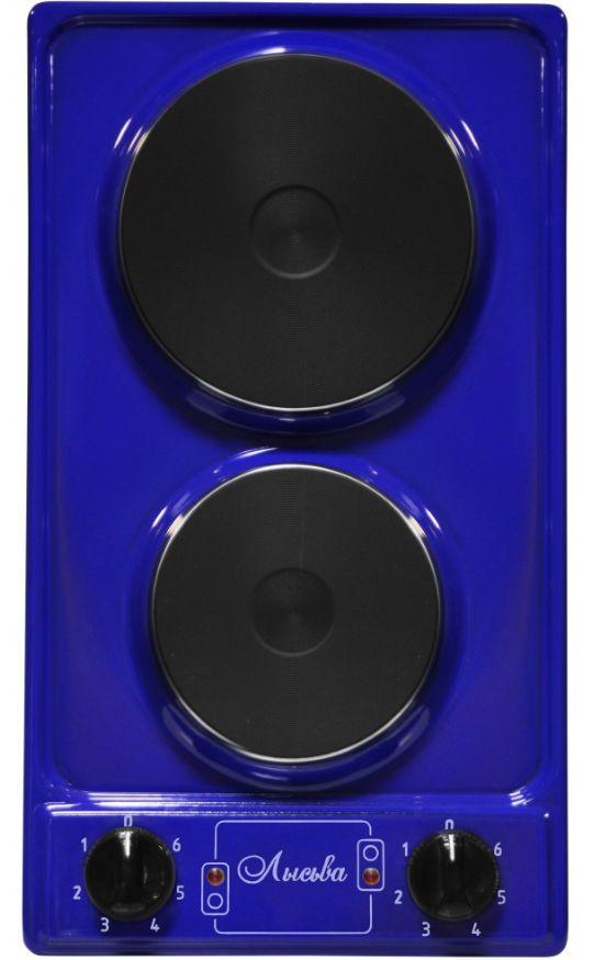 (ШхГхВ)29х51х10см.Цвет синий.Мощность единовременно потребляемая, кВт 2,2.Мощность конфорок, кВт (большой) 1,5.Мощность конфорок, кВт (малой) 0,7.Мощность установленная, кВт 2,2.Ступенчатые переключатели.