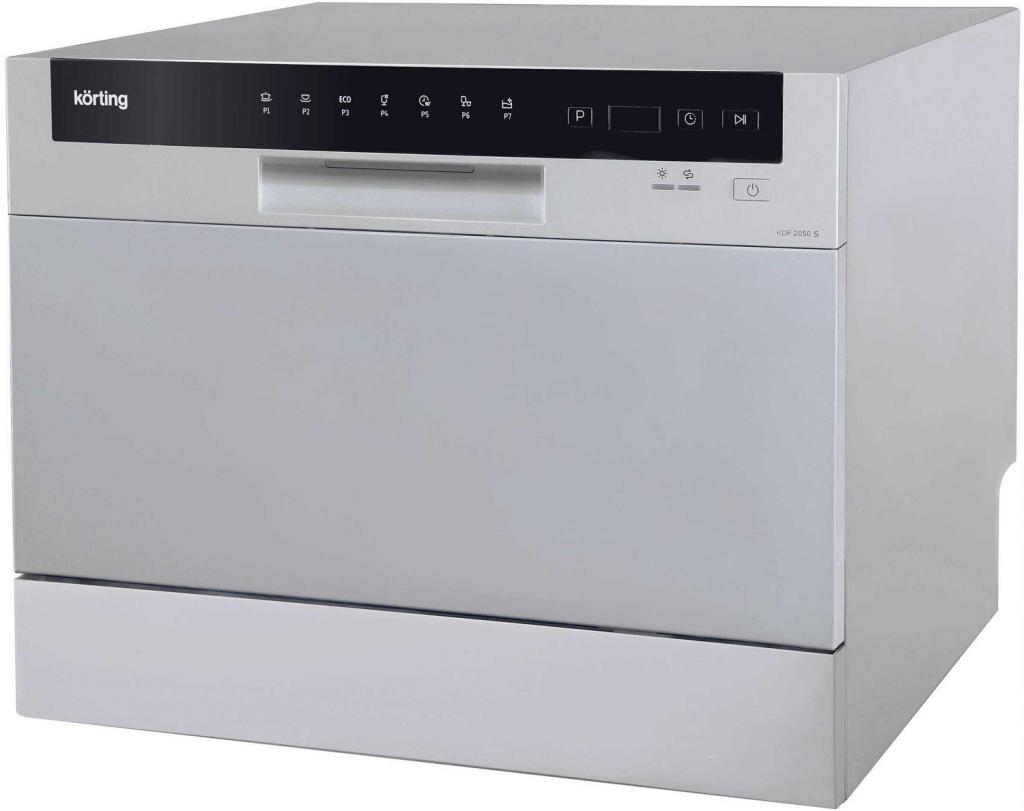 Компактная посудомоечная машина; Габариты (ВxШхГ): 43,8x55х50 см; Электронное управление; Цифровой дисплей с отображением выбранной программы; LED индикаторы; 7 программ; 6 комплектов; Таймер отложенного старта 1-24 часов; Защита от протечек; Программа самоочистки; Возможность подключения к горячей воде; Уровень шума: 49 дБ; Цвет: серебристый; Класс энергопотребления: А+; Класс мойки: A; Класс сушки: A