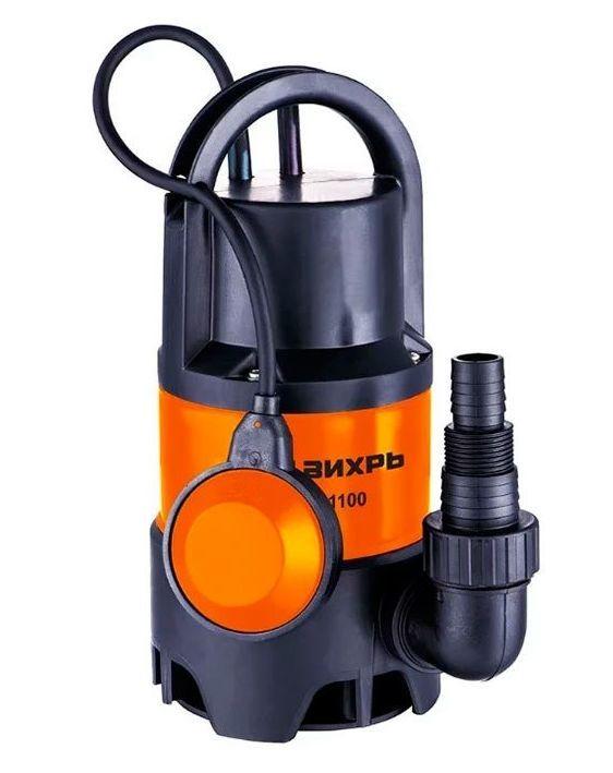 Дренажный насос ВИХРЬ ДН-1100. Мощность, Вт – 1100; Подача воды, л/мин – 258; Максимальный напор, м - 8; Материал корпуса – пластик;