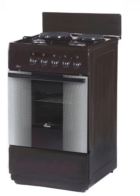 Габаритные размеры, см50 х 60 х 85. Объем духовки 50. Материал варочной поверхности эмаль. Материал крышки/щитка металл. Цвет коричневый. Тип духовки электрическая. Решетка. Жаровня. Щиток. Хозяйственный отсек. Профильная решетка. Двойное стекло дверцы духовки.