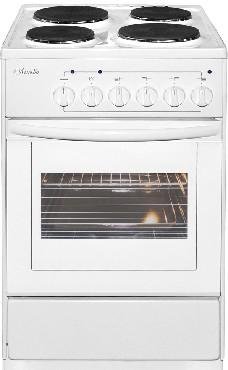 (ШхГхВ) 500х600х840±5 мм.Цвет белый.Установленная мощность: 7 кВт Масса нетто: 34 кг.Количество конфорок: 4.Мощность передней левой конфорки: 1 кВт (145 мм).Мощность передней правой конфорки: 1.5 кВт (180 мм).Мощность задней левой конфорки: 1.5 кВт (180 мм).Мощность задней правой конфорки: 1 кВт (145 мм).Тип духовки: электрическая.Мощность вехнего ТЭНа: 0.8 кВт.Мощность нижнего ТЭНа: 1.2 кВт.Температура жарочного шкафа регулируется от 50 до 300 °С.Объём жарочного шкафа — 57 л.Дверца съёмная с двойным стеклом.