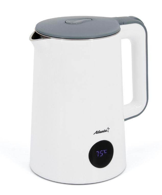 Композитный двухслойный корпус Высокий уровень термоизоляции Объем 1,8 литра Поворот на подставке на 360° Быстрое закипание Закрытый нагревательный элемент Автоматическое отключение Защита от перегрева без воды Электрошнур в цокольной подставке, 60 см Номинальная мощность 1800 Вт 230 B ~ 50 Гц