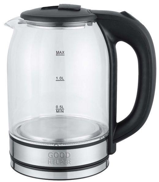 Объем 1.8 л. Потребляемая мощность 1500 Вт. Нагревательный элемент скрытый. Покрытие нагревательного элемента нержавеющая сталь. Индикатор уровня воды. Форма корпуса цилиндрическая. Подсветка. Материал стекло.