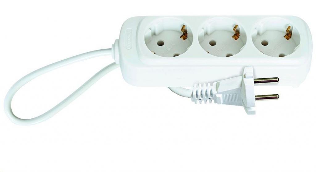 Сетевой удлинитель. Двухжильный кабель ПВС, сечение 0,75 мм2, номинальное напряжение: 220 В, рабочая частота: 50-60 Гц, сила тока: 10 А, макс. мощность нагрузки: 2200 W (2,2 кВт), заземляющий контакт: нет, 3 гнезда, длина кабеля: 1,8 м, материал: пластик, индивидуальная упаковка: пакет.