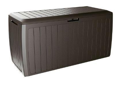 В ящиках для хранения удобно хранить подушки или другие предметы, а также эти ящики можно использовать в качестве столика. Изготовлены из пластика, имитирующего натуральный ротанг, дерево и бамбук. Ящики для хранения легко и быстро собираются без дополнительных инструментов. С двух сторон имеются ручки для переноски. Благодаря наличию проушины, ящик можно закрыть навесным замком. •Объем: 290 л •Размер: 116x47x60 см •Цвет: венге •Защищает содержимое от дождя
