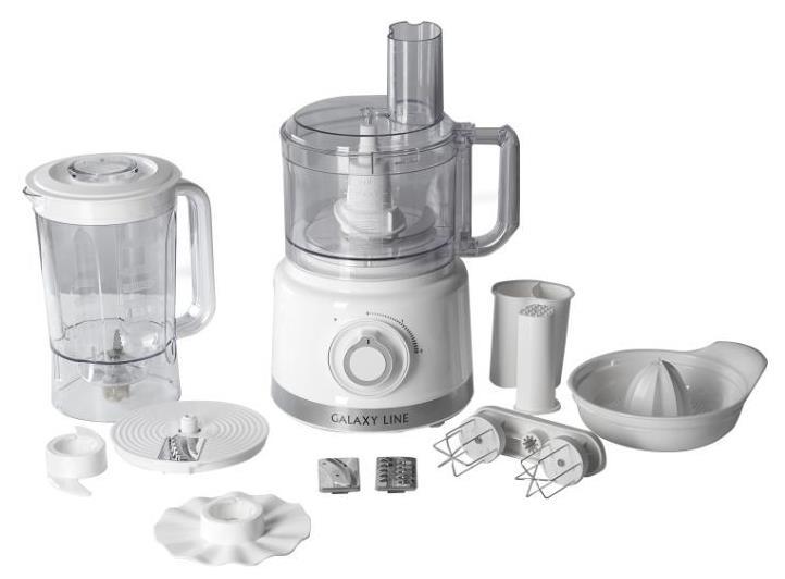 GALAXY LINE GL 2309 (2шт) Кухонный комбайн 1000 Вт, 2 скорости работы и импульсный режим, пластиковая чаша объемом 1,5л, стационарный блендер с чашей объемом 1,5л, 8 насадок для обработки продуктов: нож для измельчения, насадка для замешивания теста, насадка для крупной нарезки, насадка для крупной шинковки, насадка для нарезки картофеля фри, насадка- венчик для взбивания, насадка- соковыжималка для цитрусовых, насадка для перемешивания), защита двигателя от перегрузки, номинальное напряжение 220-240 В, номинальная частота 50 Гц