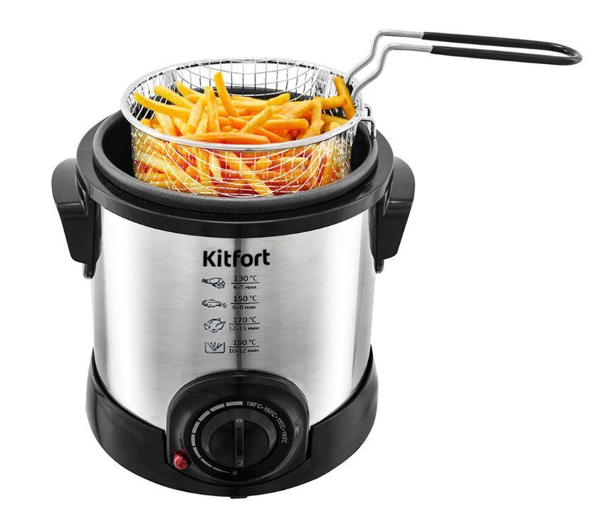Во фритюрнице Kitfort KT-2011 продукты жарятся в глубоком слое горячего масла. С помощью термостата вы можете плавно регулировать температуру приготовления. Чаша фритюрницы несъёмная, покрыта антипригарным покрытием.Объём масла 1.5 л. Мощность 1200 Вт. Управление механическое. Регулировка температуры есть.