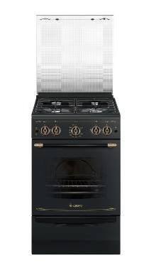 Цвет: черный. Варочная поверхность: эмалированная. * Габаритные размеры ШхГхВ: 50х58.5х85 см * Полезный объём духовки: 52 л * Выдвижной ящик для посуды и принадлежностей * Съемные проволочные направляющие духовки * Газ-контроль духовки * Терморегулятор (термостат) * Гриль * Чугунные решетки горелок стола * Ножки регулировочные * Электророзжиг горелок, кнопка розжига на панели * Подсветка духовки одинарная * Электророзжиг духовки, кнопка розжига на панели *