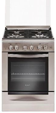 Габаритные размеры: 60х60х85 см. Духовка газовая. Полезный объем духовки: 52 л. Таймер механический. Газ-контроль духовки. Электророзжиг горелок стола/горелок духовки. Кнопка розжига на панели. Гриль-горелка. Вертел с электроприводом. Цвет нерж. сталь.