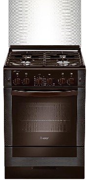 85х60х60, Таймер механический, газ-контроль духовки, электророзжиг горелок стола/духовки, кнопка розжига на панели, гриль-горелка, вертел с электроприводом, обьем духовки 52л,терморегулятор. Цвет коричневый, стекл. крышка.