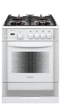 Габариты: 60х60х85 см. Полезный объем духовки:52 л. Таймер электронный. Газ-контроль горелок стола/духовки. Электророзжиг горелок стола/духовки. Встроенный в ручки управл-я электрозжиг горелок стола. Гриль-горелка. Вертел с электроприводом. Цвет белый.