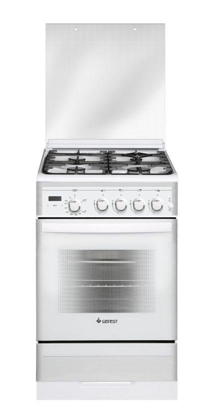 Габаритные размеры ШхГхВ, см: 50x58.5x85. Цвет: белый. Объем духовки, л: 52. Фасад: стеклянный. Количество зон приготовления: 4. Варочная поверхность: эмалированная. Крышка: стеклянная крышка. Класс электробезопасности: I. Вертел с электроприводом. Съемные проволочные направляющие духовки. Выдвижной ящик для посуды и принадлежностей. Таймер сенсорный. Газ-контроль горелок стола. Терморегулятор (термостат). Газ-контроль духовки. Чугунные решетки горелок стола. Гриль. Электророзжиг горелок, встроенный в ручки. Ножки регулировочные. Электророзжиг духовки, встроенный в ручку. Подсветка духовки одинарная
