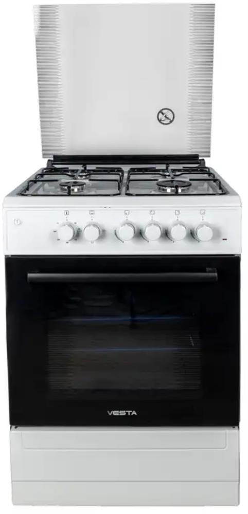 Горелки стола: Газовые – 4 шт. Газ.Контроль - Полный. Мощность горелок рабочего стола: Горелка передняя левая/правая – 2,0/2,4 кВт. Горелка задняя левая/правая – 2,0/1,0 кВт. -Мощность горелки духовки – 2,5 кВт. -Объем духовки в литрах: 65 л. Верхний/нижний нагреватель духовки – газ. Газ-контроль полный. Решетка рабочего стола – сталь. Крышка рабочего стола – стекло. Термометр духовки. Кнопка электророзжига горелок стола. Электрическая подсветка духовки. Противень – 2 шт. В/Ш/Г 850/600/600