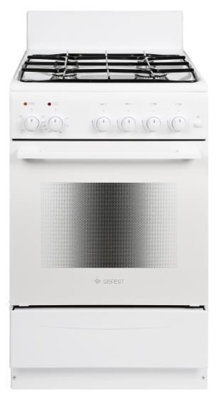 Габаритные размеры ШхГхВ: 50х58,5х85 см * Цвет: белый. Варочная поверхность: эмалированная * Объём духовки: 60 л. Духовка: электрическая * Подсветка духовки одинарная * Штампованные направляющие духовки * Терморегулятор (термостат) * Электророзжиг горелок, кнопка розжига на панели *