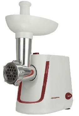 Номинальная потребляемая мощность 2000 Вт, Производительность 1,7 кг/мин, Электромясорубка предназначена для измельчения мяса и других видов продуктов, также используется для изготовления колбасок, лапши, спагетти, печенья, сока из мягких фруктов и овощей, Подходит для обработки любого вида мяса, Цвет: белый с красным , Прочный металлический шнек, Металлический привод шнека увеличивает надежность и долговечность прибора, Крестообразный нож, , Насадка для томатов, Две насадки «КУББЕ», Насадка для набивки колбасок, Удобный толкатель, Противоскользящие прорезиненные ножки, Функция РЕВЕРС обеспечивает простоту очистки шнека при забивании продуктами, Автоматическое отключение при забивании горловины продуктами ,Система защиты двигателя от перегрева.