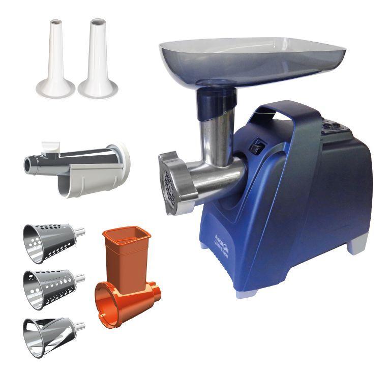 Габаритные размеры (ШxВxГ) 0,4 х 0,3 х 0,3 м Номинальная потребляемая мощность 300 Вт Панель управления Механическая Длина провода 1,5 м Производительность 4 кг/мин Мощность 2000 Вт Двойная защита от перегрузки; Функция «реверс» для предотвращения наматывания жилок на шнек; Отсек в корпусе для шнура питания, хранения ножа и насадок; Особая заточка ножа и решетки увеличенной толщины из нержавеющей стали, обеспечивающие высокое качество фарша из всех видов мяса и других продуктов; До 30 минут непрерывной работы; 2 вида решеток для получения фарша разной консистенции - с диаметром отверстий 4,9 мм и 8,5 мм; Новая конусообразная конструкция шинковки для овощей; Высокое размещение шнековой камеры; Эргономичная гайка для удобной сборки/разборки мясорубки; Широкая ручка для переноски; Устойчивые нескользящие ножки для фиксации мясорубки на поверхности стола; Цвет темно-синий