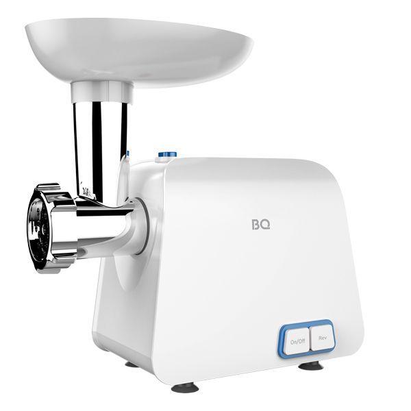 BQ MG1004 WHITE-BLUE Мощность 2100 Вт Функция реверса 2 диска для разных видов фарша (5 мм и 7 мм) Нож из нержавеющей стали Насадка для колбасок и кеббе Овощерезка с 3 барабанами Мытье в посудомоечной машине