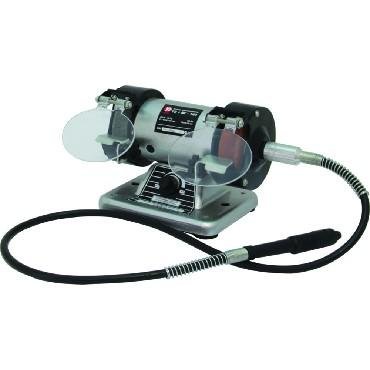 Точило электрическое Калибр ТЭ+ВГ-160 с гибким валом предназначено для сухой заточки, шлифования и полирования различных изделий в бытовых условиях. Абразивные круги (шлифовальные, полировальные) являются основным рабочим инструментом для сухой обработки разнообразных предметов. Кроме того, вращения с якоря двигателя может передаваться на гибкий вал через переходник. На цанговый патрон гибкого вала устанавливаются насадки, аналогичные используемым в гравёрах. Для безопасной работы на защитных кожухах крепятся: прозрачные (защитные) экраны и рабочие упоры, обеспечивающие опору обрабатываемому предмету. регулировка числа оборотов; гибкий вал; резиновые ножки для уменьшения вибрации; защитные кожухи и прозрачные (защитные) экраны для безопасной работы; Характеристики Потребляемая мощность 160 Вт, Число оборотов на холостом ходу 0-10000 об/мин, Максимальный размер шлифовального круга (диаметр х толщина) 75х17 мм, Посадочный диаметр круга 10 мм, Уровень вибрации 2,1 м/с2, Электродвигатель однофазный коллекторный,