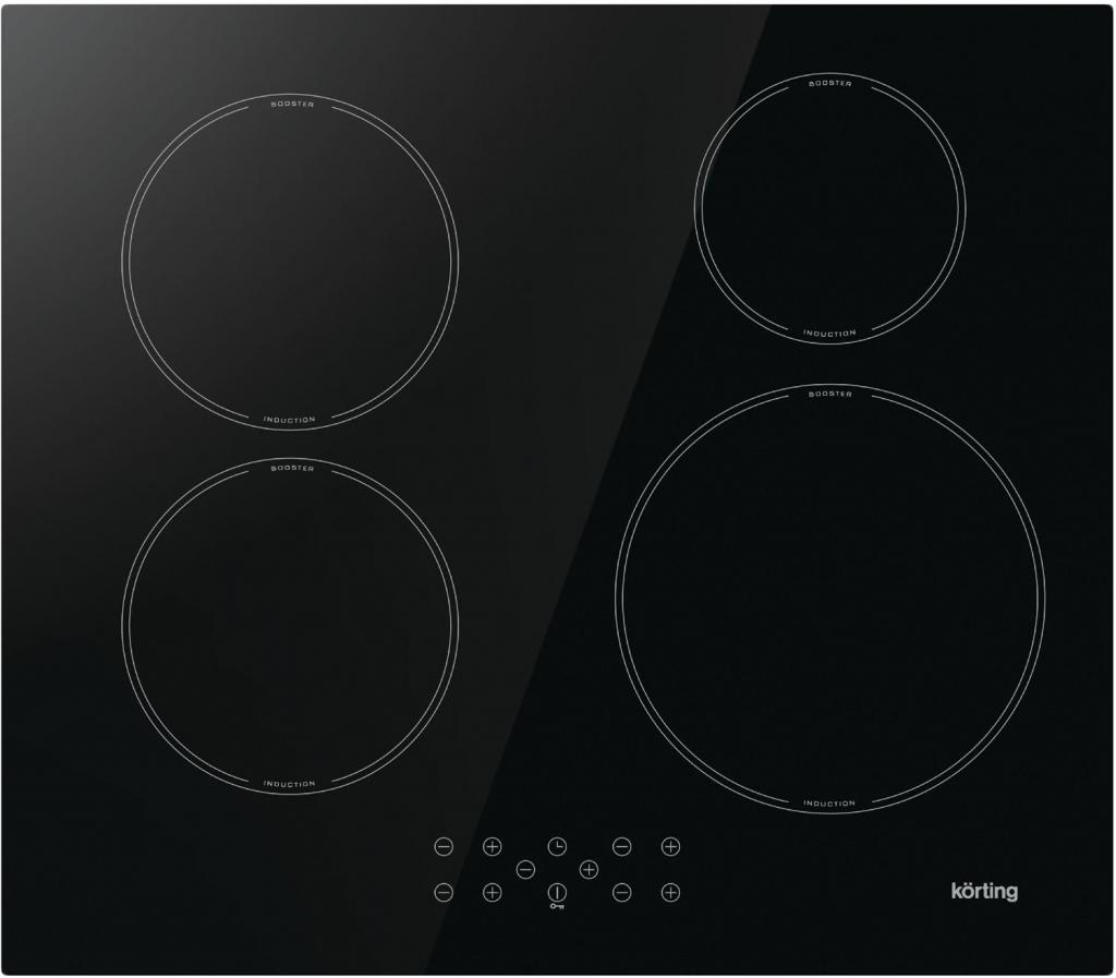 Индукционная варочная панель; Ширина: 60 cм, сенсорное управление, 4 индукционные зоны приготовления, LED индикация для каждой зоны, таймер, Booster для 4 зон, выбор уровня мощности для каждой зоны отдельно, функция "Защита детей", автоматика приготовления, увеличенная зона нагрева 23 см, автоматическое отключение, индикация остаточного тепла. Цвет: черный, дизайн рамки: без рамки.