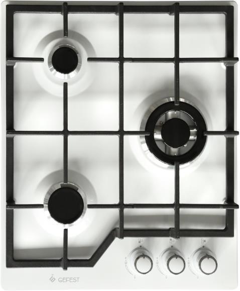 Размеры монтажного проема, ШхГ, см 40,6 х 48,6; Ширина, см 45 Глубина, см 53 Высота, см 9, Количество зон приготовления 3, Цвет модели Белый, Материал варочной поверхности Эмаль, Материал решеток варочной поверхности Чугун, Двухзонная горелка варочной поверхности, Газ-контроль горелок стола, Электророзжиг горелок стола Розжиг встроен в ручки