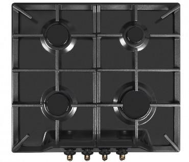 Габаритные размеры ШхГхВ: 59х52х9.4 см Газ-контроль горелок стола Чугунные решетки горелок стола Фиксированное положение «малое пламя» Электророзжиг горелок, встроенный в ручки Тип: газовая Количество зон приготовления: 4 Варочная поверхность: эмалированная Диапазон номинальных напряжений, В: 220-230Присоединительная резьба газопровода: G 1/2-В Сетевой шнур и вилка Класс электробезопасности: I Цвет: черный Дизайн: ретро
